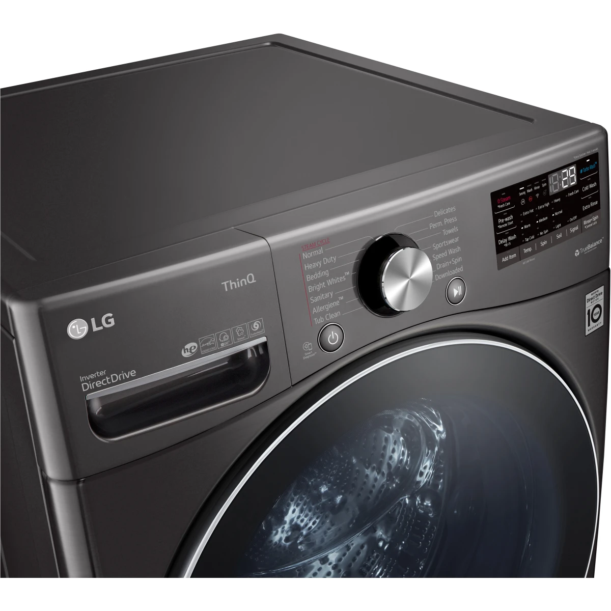 • Wash Options: 13 (TurboWash®, Steam, Fresh Care, ColdWash™, Pre-Wash, Extra Rinse, Delay Start, Wi-Fi, Remote Start, Rinse+Spin, Control Lock, Spin Only, Add Item)